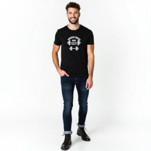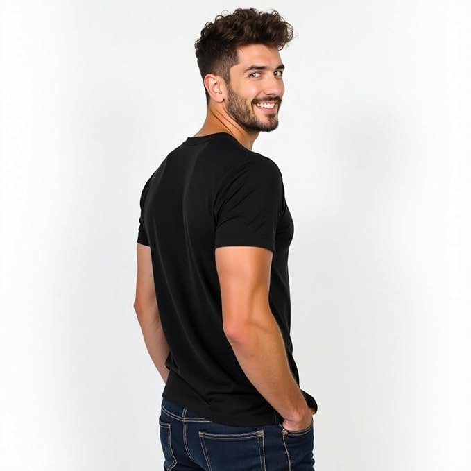 Black Round Neck T-Shirt for Men, Polyester Fabric, Gym, Running, Workout Wear, Half Sleeves with Stylish Front Print