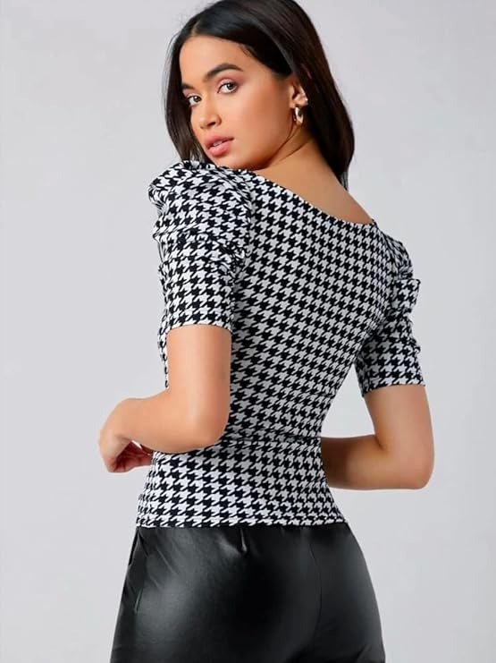 Fashion Women’s Sweet Heart Neck Balloon/Puff Bishop Sleeve Elegant Casual Tee Top, 23″ inches (BZF-Top Mantos-01)