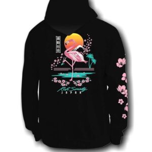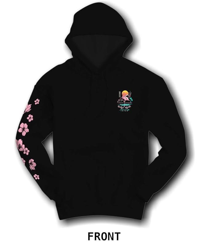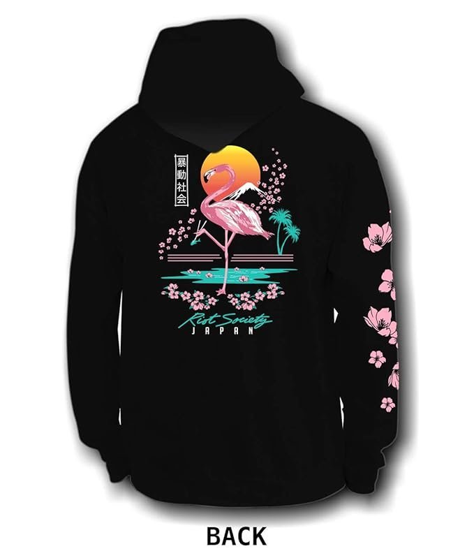- EYE-CATCHING DESIGN: This hoodie features a vibrant flamingo and sunset graphic with Japanese text, creating a unique and stylish look. Perfect for those seeking trendy streetwear and Japanese-inspired fashion.