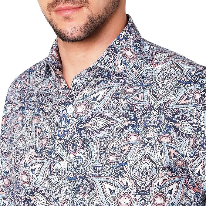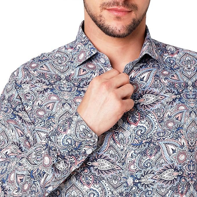 Men’s Printed Cotton Shirt | Full Sleeve | Tailored Fit Summer Casual Formal Wear | Soft Breathable Fabric