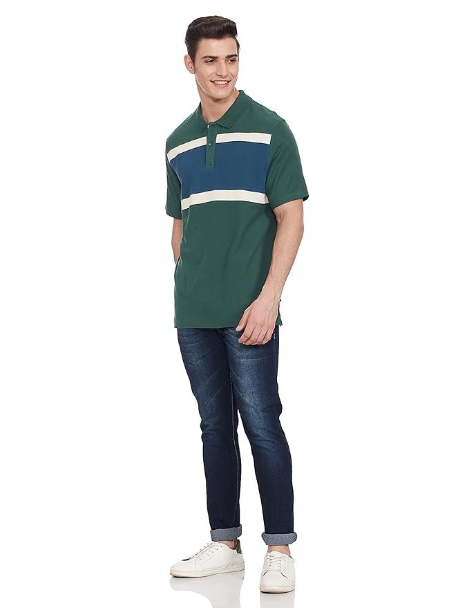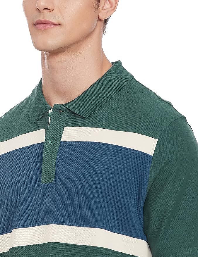 Mens Striped Cotton Polo Neck Regular Fit T-Shirt