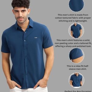 - ✅【Unique Design】Mens casual shirts feature half sleeve,spread collar, solid color,slight vertical ribbing,relaxed fit,simple and fashion