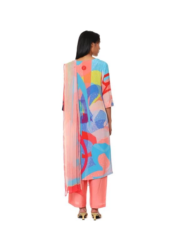 Peach Medium Crepe Printed Kurta Bottom Set for Women