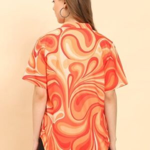 - ✔ Elegant Printed Shirt for Women – Crafted from premium cotton fabric, this stylish orange mandarin collar shirt offers all-day comfort and breathability, perfect for casual and formal wear