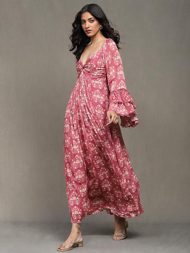 Ritu Kumar Pink Block Print Long Dress