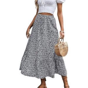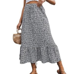 Rocks Women’s Casual High Waist Floral Print Skirt Split Thigh A Line Maxi Skirts