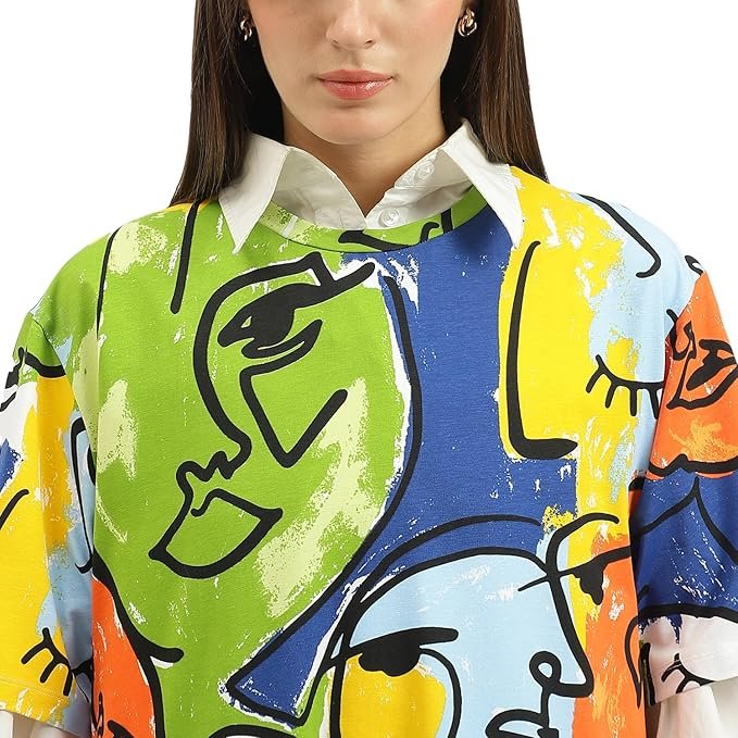 Womens and Girls Regular fit Graphic Printed Half Sleeve Cotton Multicolored Women Cropped Tops
