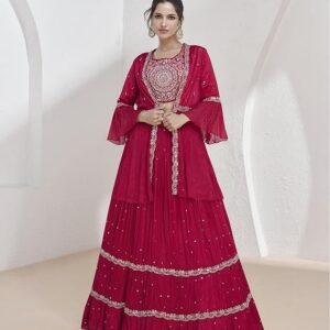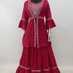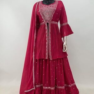 - Top Fabric : Chinon With Santoon Inner, Jacket Fabric : Chinon, Bottom Fabric : Chinon, Dupatta Fabric : Chinon