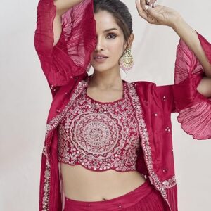 Women Ethnik Elegant Pink Embroidered Lehenga Choli Set